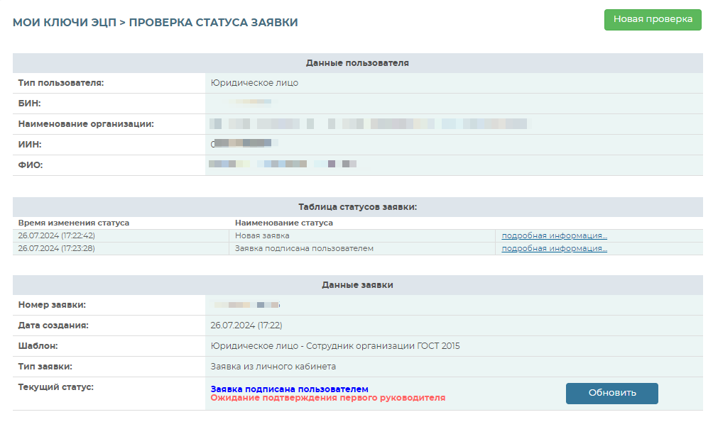 In this section, you can apply online (subject to the availability of valid DS keys), without confirming a request at the Registration Center.