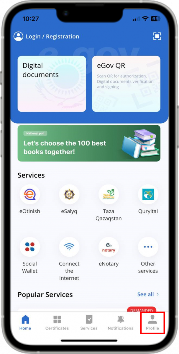 Option 2. User registration via the eGov Mobile application