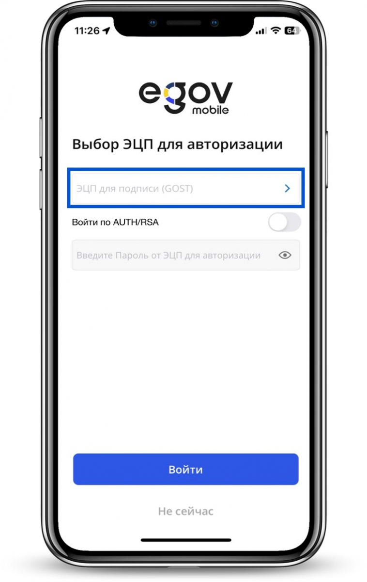 Примечание: Сертификаты ЭЦП, выпущенные с мобильного приложения eGov mobile, могут быть использованы только в мобильном приложении eGov mobile.