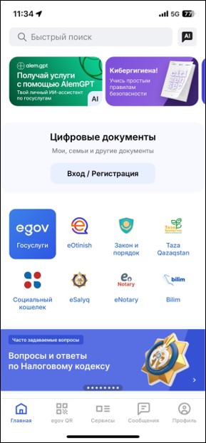 Откройте мобильное приложение eGov mobile.