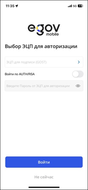 - Авторизуйтесь в приложении с помощью ЭЦП