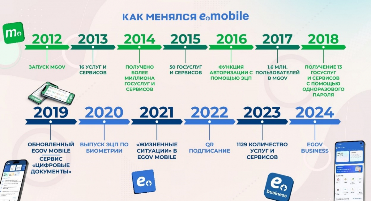 В июле 2024 года был представлен новый компонент мобильного электронного правительства - приложение для предпринимателей eGov Business. Благодаря развитию мобильного приложения представители малого и среднего бизнеса могут пользоваться госуслугами и сервисами со своих смартфонов. Так, пользователи eGov Business могут всего в пару кликов зарегистрировать первого руководителя юридического лица, подать заявку на выпуск ЭЦП, подписать различные документы через QR и многое другое.
